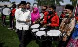 Wakil Gubernur Jawa Barat Uu Ruzhanul Ulum (kedua kiri) bersama Wali Kota Bandung Oded M Danial (kiri) saat kegiatan Pemberian Remisi Anak dalam Rangka Hari Anak Nasional di Lembaga Pembinaan Khusus Anak (LPKA) Kelas II Bandung, Jalan Pacuan Kuda, Kota Bandung, Kamis (23/7). Sebanyak 857 anak didik lapas (Andikpas) yang berada di LPKA, Lapas dan Rutan Se-Indonesia mendapatkan remisi dalam rangka Hari Anak Nasional 2020. Foto: Abdan Syakura/Republika (FOTO : ABDAN SYAKURA/REPUBLIKA)