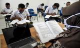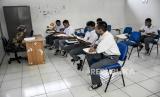 Sejumlah anak didik lapas (Andikpas) mengikuti kegiatan belajar mengajar saat kegiatan Pemberian Remisi Anak dalam Rangka Hari Anak Nasional di Lembaga Pembinaan Khusus Anak (LPKA) Kelas II Bandung, Jalan Pacuan Kuda, Kota Bandung, Kamis (23/7). Sebanyak 857 anak didik lapas (Andikpas) yang berada di LPKA, Lapas dan Rutan Se-Indonesia mendapatkan remisi dalam rangka Hari Anak Nasional 2020. Foto: Abdan Syakura/Republika (FOTO : ABDAN SYAKURA/REPUBLIKA)