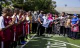 Wakil Gubernur Jawa Barat Uu Ruzhanul Ulum mengikuti menendang bola pada kegiatan Pemberian Remisi Anak dalam Rangka Hari Anak Nasional di Lembaga Pembinaan Khusus Anak (LPKA) Kelas II Bandung, Jalan Pacuan Kuda, Kota Bandung, Kamis (23/7). Sebanyak 857 anak didik lapas (Andikpas) yang berada di LPKA, Lapas dan Rutan Se-Indonesia mendapatkan remisi dalam rangka Hari Anak Nasional 2020. Foto: Abdan Syakura/Republika (FOTO : ABDAN SYAKURA/REPUBLIKA)