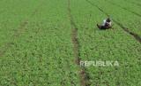 Seorang petani merawat tanaman kacang di lahan pertanian Nogosari, Boyolali, Jawa Tengah, Kamis (23/7/2020). Memasuki musim kemarau, petani di wilayah tersebut mengganti pertaniannya dengan tanaman kacang atau kedelai agar lebih mudah dalam merawatnya sehingga tetap produktif saat musim kemarau. (FOTO : ANTARA/Aloysius Jarot Nugroho)