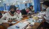 Sejumlah warga Kampung Bayam (kiri) melakukan pembukaan rekening dengan Bank DKI saat pelaksaan Resettlement Action Plan (RAP) PT Jakarta Propertindo (Perseroda) (Jakpro) di Kantor Lurah Papanggo, Tanjung Priok, Jakarta, Kamis (23/7/2020). Sebanyak 604 KK atau 1.612 warga Kampung Bayam yang terdampak proyek pembanguan Jakarta International Stadium (JIS) mengikuti kegiatan tersebut yang bertujuan agar warga terdampak tidak mengalami penurunan kualitas hidup dan secara bersamaan pembangunan proyek megastruktur kota Jakarta itu dapat tercapai. (FOTO : Aprillio Akbar/ANTARA FOTO)