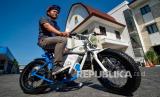 Karyawan PLN NTB mencoba mengendarai sepeda listrik Mbojo Electric Bicycle (Matric-B) di kantor PLN Unit Induk Wilayah NTB di Mataram, NTB, Kamis (23/7/2020). Sepeda listrik unik dengan konsep vintage chopper electric bike tersebut merupakan produk IKM binaan PLN Unit Pelaksana Pelayanan Pelanggan (UP3) Bima dengan keunggulan berat hanya 35 kilogram, top speed mencapai 45 km/jam, tiga jam proses pengisian energi baterai dan dapat menempuh jarak hingga 60 kilometer. (FOTO : Antara/Ahmad Subaidi)