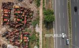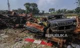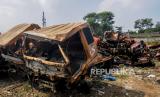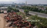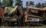 REPUBLIKA.CO.ID, JAKARTA -- Tumpukan bangkai truk sampah di kawasan Pesanggrahan, Jakarta, Jumat (24/7). Puluhan bangkai truk sampah tidak layak jalan milik Dinas Lingkungan Hidup Pemerintah Provinsi DKI Jakarta itu telah ada sejak tahun 2000-an dan kini sedang dalam tahap proses untuk dilelang.