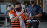 REPUBLIKA.CO.ID, JAKARTA -- Komisi Pemberarantaan Korupsi memeriksa tersangka mantan ketua DPRD Kabupaten Muara Enim Aries HB berjalan saat akan diperiksa atas kasus suap proyek di Dinas PUPR di Gedung KPK Jakarta, Jumat (24/7).