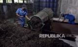 REPUBLIKA.CO.ID, GIANYAR -- Pekerja melakukan proses pengolahan sampah organik untuk dijadikan pupuk kompos di Rumah Kompos Desa Adat Padangtegal, Ubud, Gianyar, Bali, Sabtu (25/7).