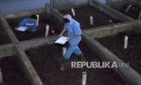 Pekerja memeriksa sampah organik yang diolah menjadi pupuk kompos di Rumah Kompos Desa Adat Padangtegal, Ubud, Gianyar, Bali, Sabtu (25/7/2020). Rumah kompos yang dikelola desa adat setempat itu setiap harinya mampu memproduksi sekitar 300 kilogram pupuk kompos hasil olahan sampah organik yang dikumpulkan dari warga, hotel, serta restoran yang ada di kawasan pariwisata tersebut. (FOTO : Antara/Fikri Yusuf)