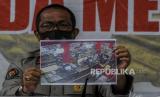 Kabid Humas Kombes Yusri Yunus memperlihatkan gambar rekaman CCTV saat konferensi pers di Mapolda Metro Jaya, Jakarta, Sabtu (25/7). Polda Metro Jaya menyimpulkan kasus kematian editor Metro TV, Yodi Prabowo disebabkan oleh bunuh diri. Hal ini berdasarkan temuan dari barang bukti, pemeriksaan terhadap 34 saksi dan olah TKP tempat ditemukannya jenazah. Republika/Putra M. Akbar (FOTO : Republika/Putra M. Akbar)