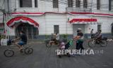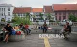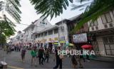 REPUBLIKA.CO.ID, JAKARTA -- Sejumlah wisatawan berjalan di Kali Besar, kawasan Kota Tua, Jakarta, Sabtu (25/7). Meskipun sebagian kawasan Kota Tua masih ditutup saat PSBB masa transisi, sejumlah titik salah satunya tepi Kali Besar dipadati wisatawan dan pedagang kaki lima.