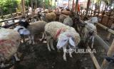 REPUBLIKA.CO.ID, YOGYAKARTA -- Penjual hewan qurban memberikan makanan domba di Yogyakarta, Ahad (26/7).