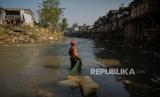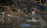 Warga mencari logam di aliran Sungai Ciliwung, Manggarai, Jakarta, Senin (27/7). Pada peringatan Hari Sungai Nasional yang diperingati setiap tanggal 27 Juli kondisi sungai Ciliwung masih dipenuhi sampah serta digunakan sebagai faslitias mandi, cuci kakus (MCK) yang berdampak pada pencemaran sungai akibat minimnya kesadaran masyarakat untuk menjaga lingkungan. (FOTO : Republika/Thoudy Badai)
