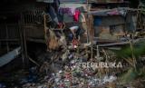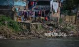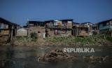 Deretan pemukiman padat penduduk di area bantaran Sungai Ciliwung, Manggarai, Jakarta, Senin (27/7). Pada peringatan Hari Sungai Nasional yang diperingati setiap tanggal 27 Juli kondisi sungai Ciliwung masih dipenuhi sampah serta digunakan sebagai faslitias mandi, cuci kakus (MCK) yang berdampak pada pencemaran sungai akibat minimnya kesadaran masyarakat untuk menjaga lingkungan. (FOTO : Republika/Thoudy Badai)