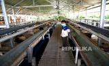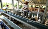 REPUBLIKA.CO.ID, YOGYAKARTA -- Pegawai memeriksa domba siap potong di Sinatria Farm, Sleman, Yogyakarta, Senin (27/7).