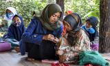 REPUBLIKA.CO.ID, BANDUNG -- Relawan dari Karang Taruna Wanabakti RW 15 Kampung Cibiru Beet berinisiatif untuk memberikan pembelajaran secara gratis bagi 50 siswa PAUD, TK dan SD di Kampung Cibiru Beet, Desa Cileunyi Wetan, Kabupaten Bandung, Senin (27/7),