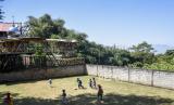 Sejumlah siswa bermain bola disela kegiatan belajar gratis di Kampung Cibiru Beet, Desa Cileunyi Wetan, Kabupaten Bandung, Senin (27/7). Relawan dari Karang Taruna Wanabakti RW 15 Kampung Cibiru Beet berinisiatif untuk memberikan pembelajaran secara gratis bagi 50 siswa PAUD, TK dan SD di kawasan kaki Gunung Manglayang yang terkendala oleh kepemilikan gawai serta gagap teknologi. Foto: Abdan Syakura/Republika (FOTO : ABDAN SYAKURA/REPUBLIKA)