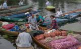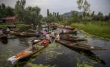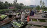 REPUBLIKA.CO.ID, JAKARTA -- Para lelaki Kashmir menjual produk mereka di pasar sayur terapung di Danau Dal di Srinagar, daerah Kashmir yang dikuasai India, Ahad (26/7).