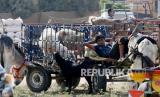 REPUBLIKA.CO.ID, GAZA -- Seorang pemuda beristirahat di gerobak keledai keluarganya ketika para pedagang menunggu pelanggan di pasar hewan di Deir el-Balah, Jalur Gaza tengah, Selasa (28/7/2020).