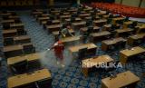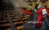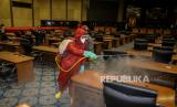 Penyemprotan disinfektan dilakukan pasca terdapat satu anggota DPRD dan satu PNS terpapar COVID-19 yang membuat Gedung DPRD ditutup hingga Ahad (2/8).