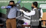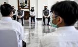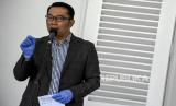 Gubernur Jawa Barat Ridwan Kamil mengenakan rompi pada kegiatan Penyerahan Surat Keputusan (SK) Gubernur di Gedung Pakuan, Jalan Cicendo, Kota Bandung, Rabu (29/7). Sebanyak 1.461 guru bukan Pegawai Negeri Sipil (PNS) atau Guru Tidak Tetap (GTT) yang telah bersertifikat pendidik se-Jawa Barat menerima SK Gubernur perihal Penugasan Guru Bukan Pegawai Negeri Sipil (PNS) pada Sekolah Menengah Atas (SMA), Sekolah Menengah Kejuruan (SMK) dan Sekolah Luar biasa (SLB). Foto: Abdan Syakura/Republika (FOTO : ABDAN SYAKURA/REPUBLIKA)
