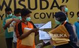 REPUBLIKA.CO.ID, SIDOARJO -- Sejumlah pasien covid-19 yang dinyatakan sembuh mengikuti wisuda penyintas COVID-19 di halaman Rumah Sakit Lapangan Surabaya, Jawa Timur, Selasa (28/7/2020).