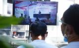 Suasana teleconference saat acara I Do Care Berbagi Qurban untuk Negeri, di halaman Masjid Syamsul Ulum Telkom University, Kecamatan Dayeuhkolot, Kabupaten Bandung, Rabu (29/7). Program Idul Adha 1441 H bersama Huawei dan Republika tersebut dilaksanakan di lima belas daerah di Indonesia. (FOTO : Edi Yusuf/Republika)
