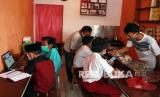 REPUBLIKA.CO.ID, TANGERANG SELATAN -- Sejumlah pelajar sekolah dasar (SD) mengikuti pembelajaran jarak jauh dengan memanfaatkan jaringan internet gratis yang disediakan sebuah warung kopi di Jombang, Tangerang Selatan, Banten, Rabu (29/7/2020).