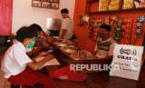 Sejumlah pelajar sekolah dasar (SD) mengikuti pembelajaran jarak jauh dengan memanfaatkan jaringan internet gratis yang disediakan sebuah warung kopi di Jombang, Tangerang Selatan, Banten, Rabu (29/7/2020). Penyediaan jaringan internet gratis yang diberikan pemilik warung kopi tersebut merupakan bentuk kepedulian terhadap dunia pendidikan di tengah pandemi COVID-19. (FOTO : Antara/Muhammad Iqbal)