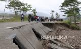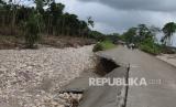 REPUBLIKA.CO.ID, MIMIKA -- Sejumlah petugas pemerintahan daerah dan warga melintasi jalan Trans Papua terputus di Distrik Kuala Kencana, Kabupaten Mimika, Papua, Kamis (30/7/2020).