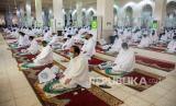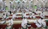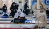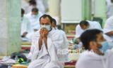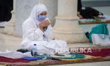 REPUBLIKA.CO.ID, ARAFAH -- Jamaah haji melaksanakan ibadah wukuf di Masjid Namira, mengenakan masker dan menjaga jarak sosial untuk melindungi diri mereka terhadap virus corona di Arafah, Kamis (30/7/2020).