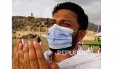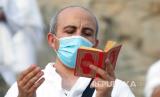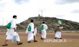 REPUBLIKA.CO.ID, ARAFAH -- Jamaah haji melaksanakan ibadah wukuf dekat Jabal Rahmah di Arafah dengan memakai masker dan menjaga jarak sosial guna menghindari penyebaran virus corona di Arafah, Arab Saudi, Kamis (30/7/2020).
