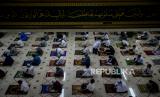 REPUBLIKA.CO.ID, BEKASI -- Sejumlah umat muslim saat menunaikan ibadah Sholat Idul Adha di Masjid Agung Al-Barkah, Bekasi, Jawa Barat, Jumat (31/7). Sholat Idul Adha 1441 Hijriah atau 11 Zulhijah dilaksanakan dengan tetap menerapkan protokol kesehatan di tengah pandemi COVID-19.