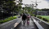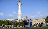 Masjid Raya Bandung menggelar sholat Idul Adha dengan menerapkan protokol kesehatan seperti menjaga jarak dan memakai masker serta pengukuran suhu tubuh guna mengurangi resiko penyebaran Covid-19.