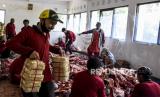 Panitia mengemas daging hewan qurban menggunakan besek sebelum dibagikan kepada mustahik di Masjid Al Lathiif, Jalan Saninten, Kota Bandung, Jumat (31/7). Gubernur Jawa Barat Ridwan Kamil mengatakan teknis pembagian daging qurban dilakukan secara pintu ke pintu (door to door) sebagai bentuk penerapan protokol kesehatan di masa Adaptasi Kebiasaan Baru (AKB) guna pencegahan penyebaran Covid-19. (FOTO : ABDAN SYAKURA/REPUBLIKA)