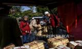 Panitia membawa besek yang berisi daging hewan qurban untuk dibagikan kepada mustahik di Masjid Al Lathiif, Jalan Saninten, Kota Bandung, Jumat (31/7). Gubernur Jawa Barat Ridwan Kamil mengatakan teknis pembagian daging qurban dilakukan secara pintu ke pintu (door to door) sebagai bentuk penerapan protokol kesehatan di masa Adaptasi Kebiasaan Baru (AKB) guna pencegahan penyebaran Covid-19. (FOTO : ABDAN SYAKURA/REPUBLIKA)
