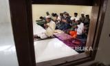 Pengungsi etnis Rohingya melaksanakan shalat Idul adha di Balai Latihan Kerja (BLK) Desa Mee Kandang, Lhokseumawe, Aceh, Jumat (31/7/2020). Sebanyak 99 orang pengungsi Rohingya Myanmar terdiri dari 43 orang dewasa dan 56 anak-anak merayakan Idul Adha 1441 hijriah sesuai dengan jadwal yang ditetapkan pemerintah Indonesia. (FOTO : RAHMAD/ANTARA )