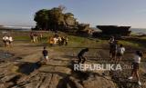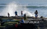 REPUBLIKA.CO.ID, TABANAN -- Wisatawan domestik menikmati pemandangan saat liburan Idul Adha 1441H di masa Adaptasi Kebiasaan Baru tahap II di obyek wisata Tanah Lot, Tabanan, Bali, Sabtu (1/8/2020).