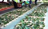REPUBLIKA.CO.ID, JAKARTA -- Dalam rangka upaya meminimalisir penggunaan kantong plastik dan kepedulian terhadap lingkungan, daun kayu jati dan besek bambu digunakan sebagai pengganti kantong plastik untuk membungkus daging hewan qurban.