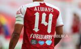 Pemain Arsenal menggunakan jersey bertuliskan angka 14 sebagai simbol jumlah juara Piala FA yang berhasil dimenangkan klub tersebut, Sabtu (1/8). (FOTO : REUTERS/Catherine Ivill)