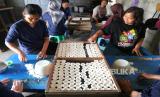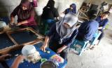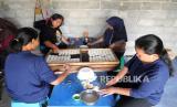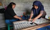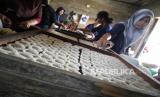 Pekerja mencetak rengginang di Adikarto, Muntilan, Magelang, Jawa Tengah, Senin (3/8). Rengginang termasuk makanan tradisional yang terbuat dari ketan. Di sini pembuatan rengginang mulai dari bahan baku hingga makanan jadi. Dan penjualan meliputi wilayah Jawa Tengah dan Yogyakarta. (FOTO : Wihdan Hidayat / Republika)