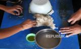 REPUBLIKA.CO.ID, YOGYAKARTA -- Pekerja mencetak rengginang di Adikarto, Muntilan, Magelang, Jawa Tengah, Senin (3/8).