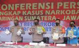 REPUBLIKA.CO.ID, JAKARTA -- Polda Metro Jaya merrilis kasus pengungkapan jaringan narkotika lintas Sumatera-Jawa di Polres Metro Jakarta Selatan, Jakarta, Senin (3/8).