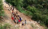 REPUBLIKA.CO.ID, GORONTALO -- Warga membersihkan material longsor di Desa Olele, Kabupaten Bone Bolango, Gorontalo, Selasa (4/8/2020).