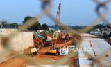 Pekerja dengan menggunakan alat berat melakukan pengerjaan pembangunan jalan tol ruas Serpong - Cinere di Pondok Cabe, Tangerang Selatan, Selasa (4/8/2020). Ruas Serpong-Cinere sepanjang 10,14 km ini merupakan bagian dari Jalan Tol Lingkar Luar Jakarta (JORR) 2 yang akan terhubung dengan Ruas Tol Kunciran-Serpong dari arah barat, proyek ini rencananya akan rampung pada bulan Oktober 2020. (FOTO : ANTARA /MUHAMMAD IQBAL)