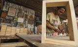 Perajin memproduksi rak mini dari kayu jati belanda di Krukut, Depok, Jawa Barat, Selasa (4/8/2020). Kerajinan hiasan rumah berbahan baku kayu jati belanda tersebut dijual secara daring melalui media sosial dengan Rp50 ribu hingga Rp2 juta tergantung ukuran. (FOTO : Antara/Asprilla Dwi Adha)