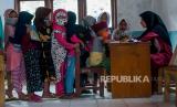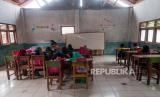 Sejumlah siswa mengikuti kegiatan belajar mengajar (KBM) di Madrasah Diniyah Takmiliyah Awaliyah Mabdail Falah, Desa Sumurbandung, Lebak, Banten, Selasa (4/8/2020). Sebanyak 80 siswa di sekolah Madrasah Diniyah tersebut mulai melaksanakan kegiatan belajar mengajar di sekolah meskipun pemda Lebak belum mengizinkan proses KBM secara tatap muka. (FOTO : ANTARA/MUHAMMAD BAGUS KHOIRUNAS)