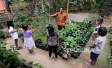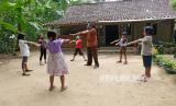 Sejumlah pelajar kelas tiga SD Kanisius Kenalan mengikuti pembelajaran secara luring atau tatap muka di halaman rumah warga di kawasan pegunungan Menoreh dusun Kapuhan, Majaksingi, Borobudur, Magelang, Jawa Tengah, Selasa (4/8/2020). Sebagian besar pelajar di kawasan ini tidak bisa belajar secara daring karena terkendala sinyal internet atau tidak memiliki gawai, namun mereka tetap bersemangat mengikuti pelajaran secara tatap muka di rumah warga dengan protokol kesehatan guna mencegah penyebaran COVID-19. (FOTO : ANTARA/ANIS EFIZUDIN)