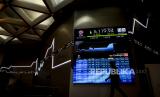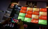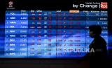 Karyawan melintas di dekat layar Pergerakan Indeks Harga Saham Gabungan (IHSG) di Bursa Efek Indonesia, Jakarta, Rabu (5/8). IHSG ditutup menguat 1,03 persen atau 52 poin ke level 5.127,05. Penguatan IHSG berbanding terbalik dengan realisasi pertumbuhan ekonomi kuartal II yang diumumkan minus 5.3 persen. Republika/Putra M. Akbar (FOTO : Republika/Putra M. Akbar)