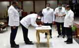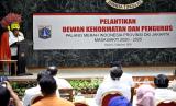 Ketua Umum PMI HM Jusuf Kalla melantik Pengurus Baru PMI Propinsi DKI Jakarta,di Balaikota DKI,Rabu (05/08). Palang Merah Indonesia (PMI) menyiapkan 500 hingga 1000 kantong darah untuk para warga Beirut , Lebanon. (FOTO : Dok PMI )