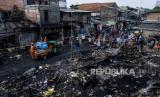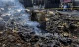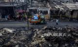 Suasana Pasar Timbul pasca kebakaran di Tomang, Jakarta, Jumat (7/8). Kebakaran yang disebabkan oleh korsleting listrik itu menyebabkan seluruh area pasar dan beberapa ruko sekitar hangus terbakar dan tidak ada korban jiwa dalam peristiwa tersebut. Republika/Putra M. Akbar (FOTO : Republika/Putra M. Akbar)