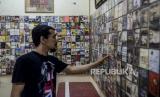 Pengunjung melihat kaset pita yang terpajang di Galeri Kreasi Perupa Jakarta, Pasar Gembrong Baru, Jakarta, Jumat (7/8). Komunitas Perupa Jakarta membuka Galeri Kreasi Perupa sebanyak 35 kios sebagai wadah untuk menjual koleksi lukisan dan berbagai barang antik. Republika/Putra M. Akbar (FOTO : Republika/Putra M. Akbar)
