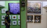 Pengunjung melihat lukisan yang terpajang di Galeri Kreasi Perupa Jakarta, Pasar Gembrong Baru, Jakarta, Jumat (7/8). Komunitas Perupa Jakarta membuka Galeri Kreasi Perupa sebanyak 35 kios sebagai wadah untuk menjual koleksi lukisan dan berbagai barang antik. Republika/Putra M. Akbar (FOTO : Republika/Putra M. Akbar)